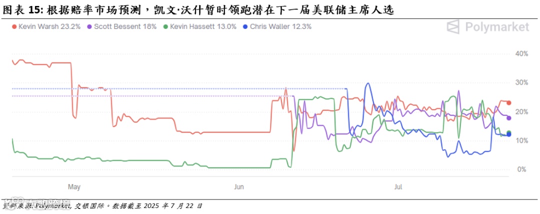 基于近期市场预测(如Polymarket),凯文·沃什暂时领跑潜在下一届美联储主席人选,现任财长贝森特位居次席。