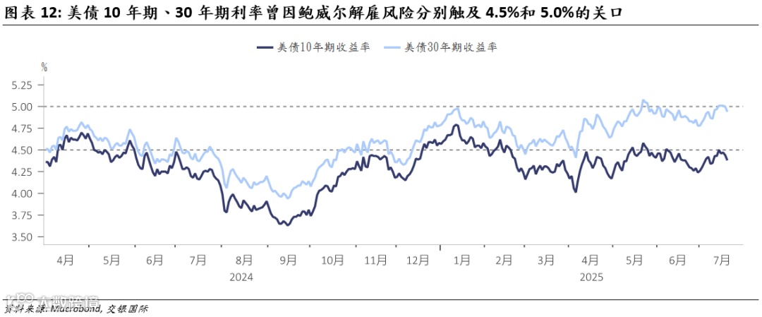 近期围绕美国总统特朗普与美联储主席鲍威尔的争端再度升温,并一度引发美元资产的显著震荡。尽管特朗普自第二任期以来已多次以撤职向鲍威尔施压,但实际操作依然面临诸多法律和政治约束,但市场近期仍在持续交易这一情形的可能性,特别是在7月中旬附近时点,美元、美债利率出现明显波动。