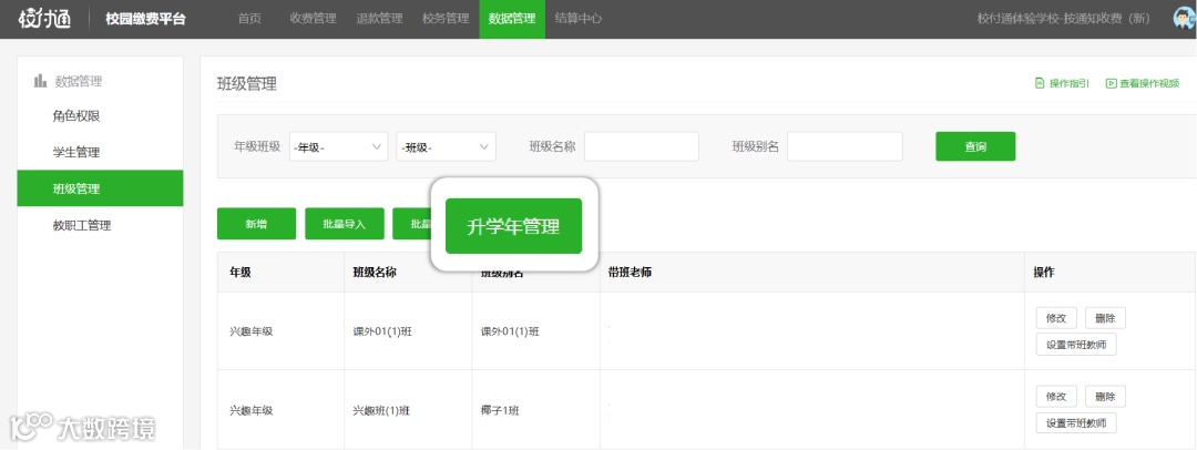 操作路径:数据管理-班级管理-升学年管理