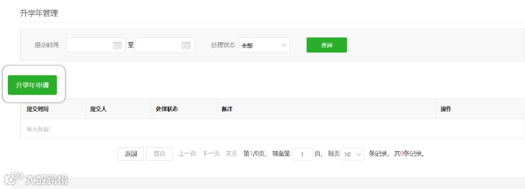 操作路径:数据管理-班级管理-升学年管理-升学年申请