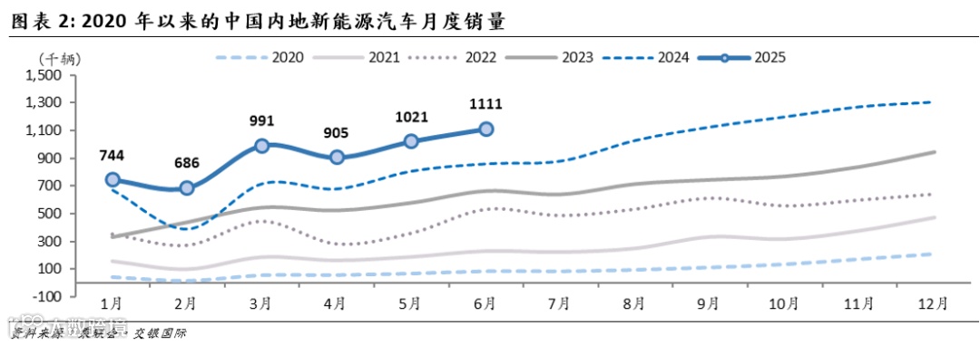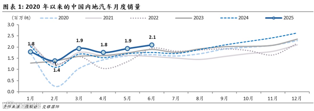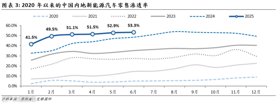 本文节选自交银国际已发布研究报告《6月新能源车渗透率升至53.3%;预计7月车市增速平稳》(2025/07/09)。
