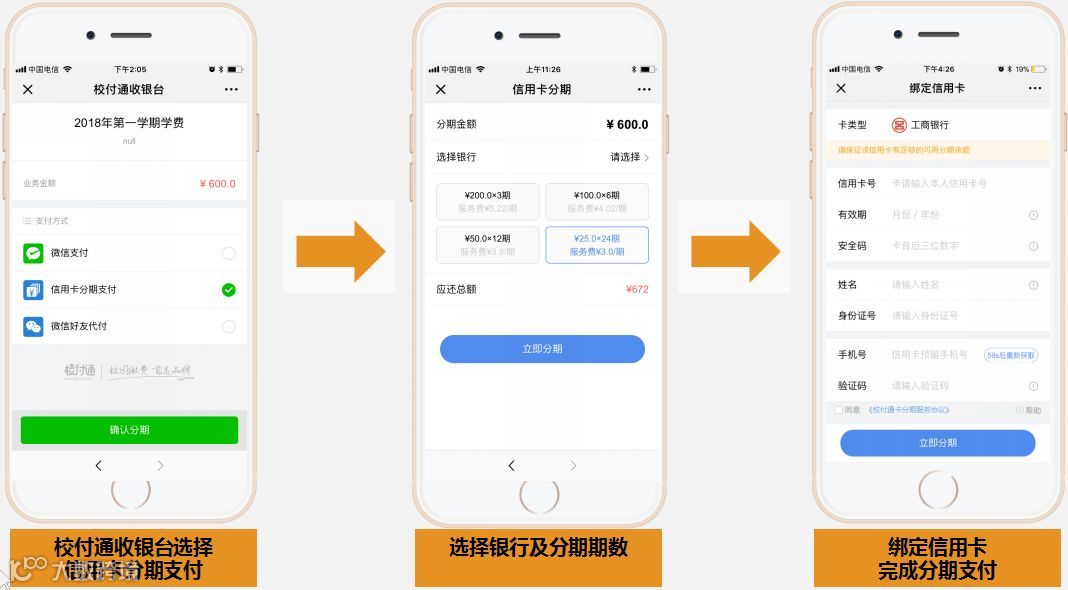 学校 快捷开通信用卡分期功能, 为家长提供更多缴费方式,实现资金快速回笼