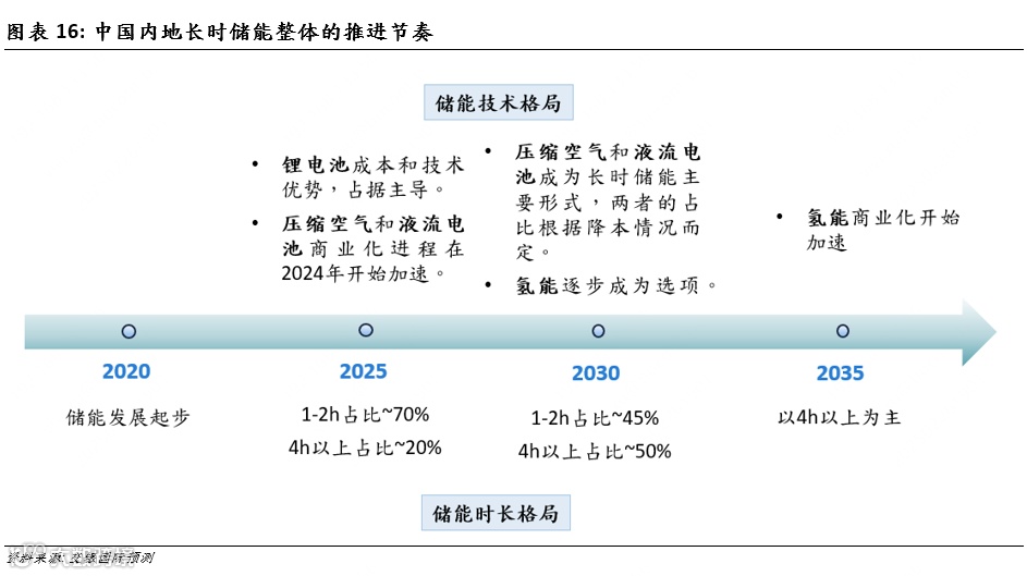 长时储能技术推进节奏预测:锂电池→压缩空气/液流电池→氢储能