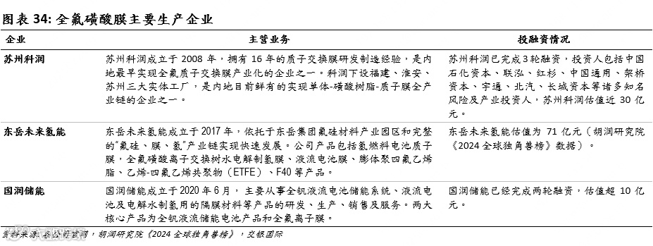 由于制备工艺复杂、技术要求高,全氟磺酸膜长期被海外公司垄断。根据高工氢电统计,2021 年中国内地液流电池国产膜占比为 23.1%,进口膜占比为 76.9%,其中杜邦的 Nafion 膜在中国内地市场份额高达 75%。离子交换膜国产替代空间大,中国内地企业苏州科润、东岳未来氢能、国润储能等均有布局。