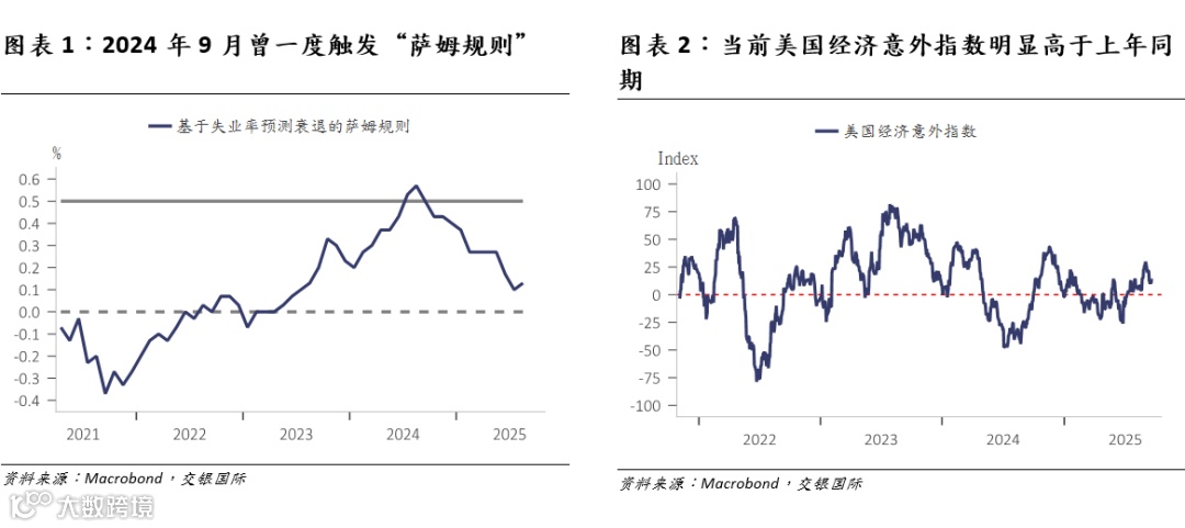 美联储今年9月25基点降息符合市场预期,作为一次典型的预防式降息,旨在防范经济下行,特别是劳动力市场的风险。相较于2024年3季度面临经济指标显著走弱,劳动力市场急速降温,甚至“萨姆规则”被触发的情形,当前美国经济环境明显好于上年同期水平,且劳动力市场虽有隐忧,但远未达到危机程度。不仅如此,当前4.25%-5.5%的政策利率水平相比上年同期已降低100个基点,货币政策的限制性程度明显缓解,也为美联储提供了更大的操作空间和容错余地。