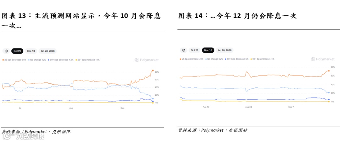 总体而言,我们重申此前观点,美联储9月重启降息并不意味着连续降息周期的开启。在中性利率上升到3%左右的水平后,当前的降息空间仅有4-5次。尽管利率期货市场、主流的预测网站仍显示10、12月可能会各降息一次,但我们认为对于降息预期仍需谨慎,特别是当前经济仍有韧性,且短期通胀上行风险的压力仍较大的情形下。如未有出现劳动力市场的意外下行,我们认为2025年内降息可能仅有一次,且仍存不降息的情形。