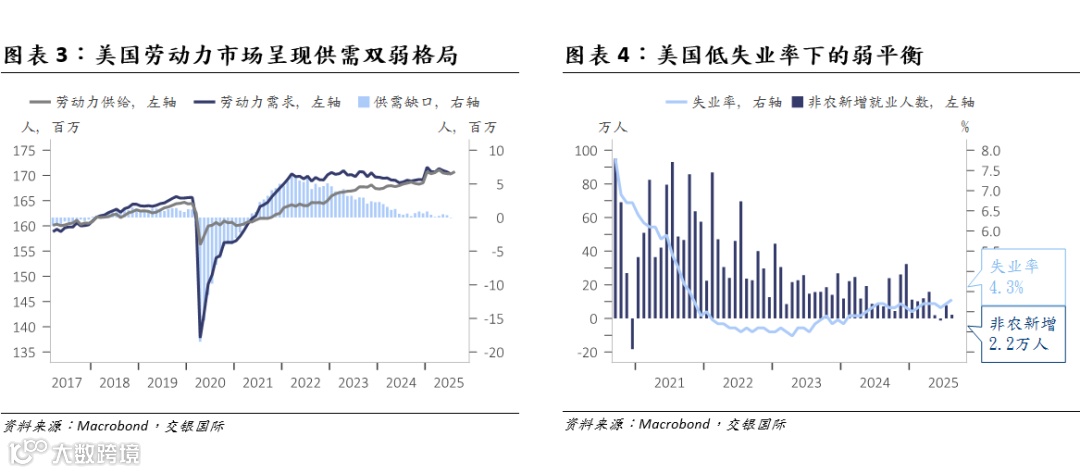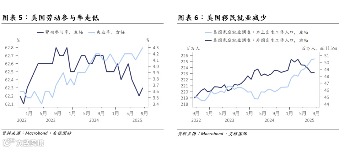 与上年9月不同,彼时因美国劳动力市场急剧恶化甚至触发“萨姆规则”大幅降息,而当前劳动力市场虽有放缓,但风险总体可控,且政策利率的限制性已较上年显著缓解。同时,当前就业降温主要源于限制移民政策导致的供需双弱格局,低失业率更多体现为一种“弱平衡”,因而大幅降息较难带来就业市场的快速改善。