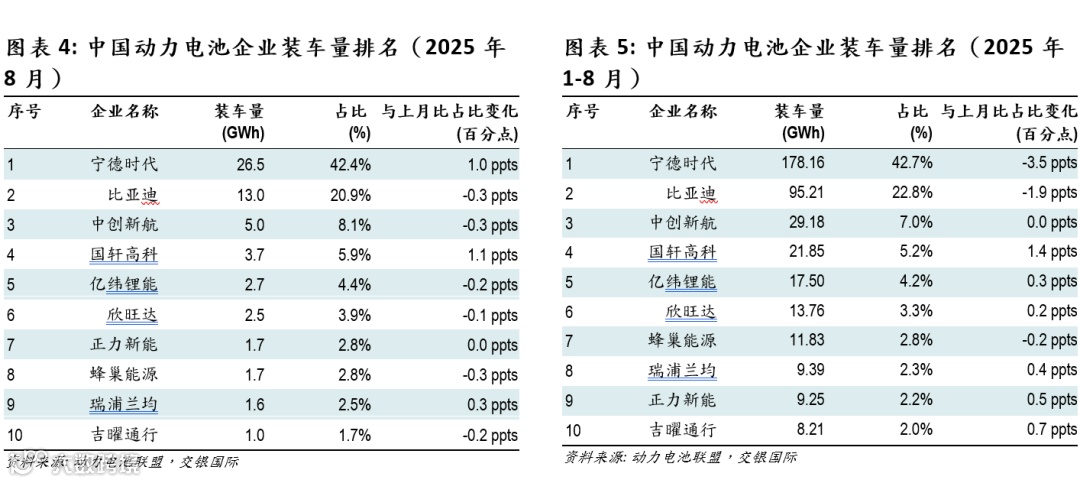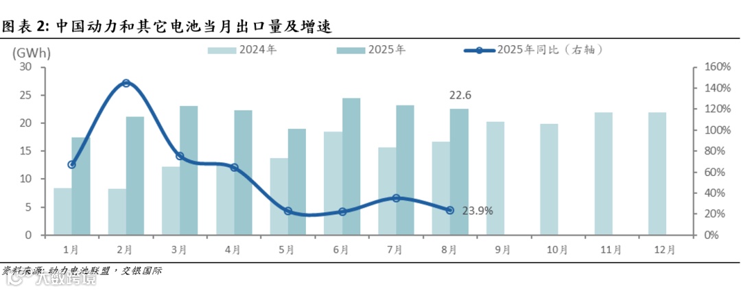 8月中国内地动力电池装车量延续增长,出口维持稳健