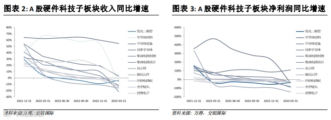 受到下游电子终端市场需求疲弱的影响,硬件科技上游行业增速纷纷呈现衰退态势。市场年初预期下游电子终端需求将会在2023年2季度至3季度期间触底反弹,但是我们认为本轮衰退除了本身下游市场需求的饱和,同时还有此前疫情期间供应链过度囤货以及下游需求提前过渡透支的影响,因此我们预计实际的需求反弹最早将出现在2024年。