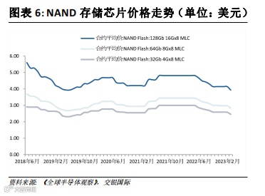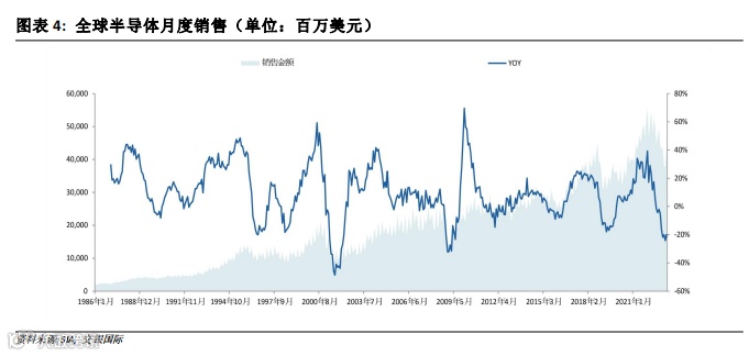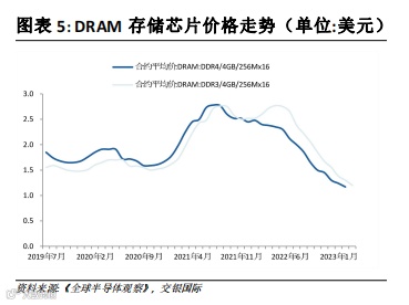 回顾此前两轮周期性反弹,2017年反弹主要动力为存储芯片的量价齐升,2019-20年反弹叠加了补库存需求以及全球疫情供应链冗余备货的影响。首先,从最新的存储芯片价格走势来看,主流存储芯片价格仍然处于下降态势。存储芯片价格一向被当做半导体周期的先行指标,因此我们认为现在对于存储芯片周期底部的判断仍然具有较大的不确定性。