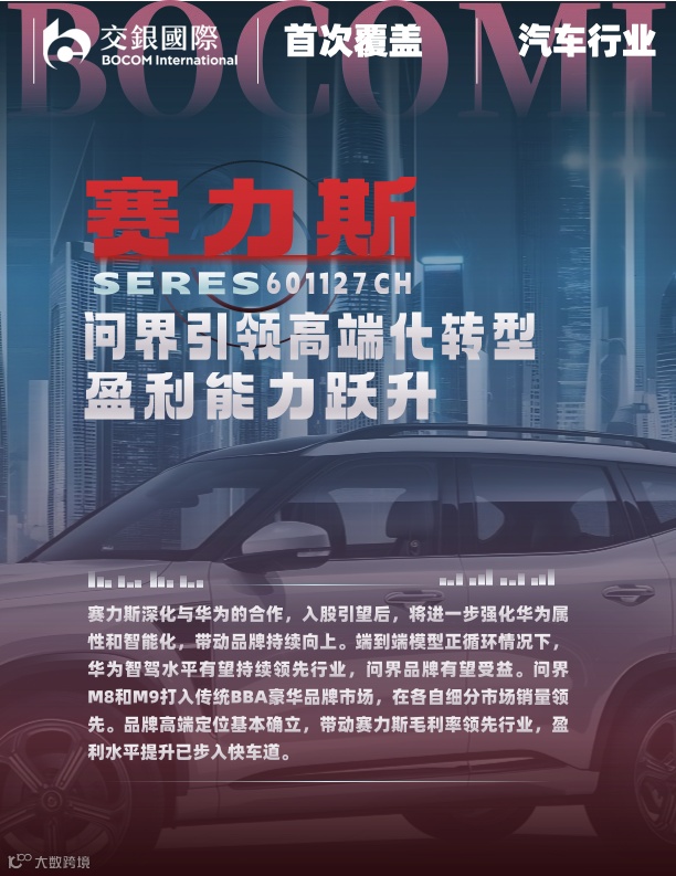 本文节选自交银国际已发布研究报告《赛力斯:问界引领高端化转型,盈利能力跃升》(2025/07/21)。