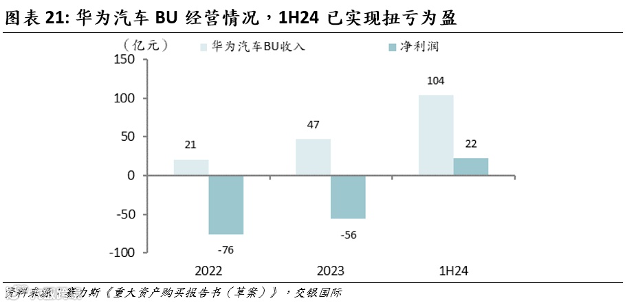 随着与华为合作车型销量的快速攀升,并为其股东如赛力斯带来可观的中长期投资回报。据36氪汽车报道,2024年上半年华为智能汽车解决方案BU收入已突破100亿元,远超2022年和2023年全年收入总和。这一跃升主要归因于与赛力斯合作的问界新M7和M9两款车型的大卖,带动了整体业务强势增长。华为终端董事、智能汽车解决方案BU董事长余承东曾公开表示,智选车业务在2024年1季度已实现扭亏为盈,车BU也在接近整体盈亏平衡。这不仅表明华为车BU正在实现从“技术投入期”向“盈利释放期”的关键转折,也为引望作为其核心资产注入了强劲的成长信心和投资价值。