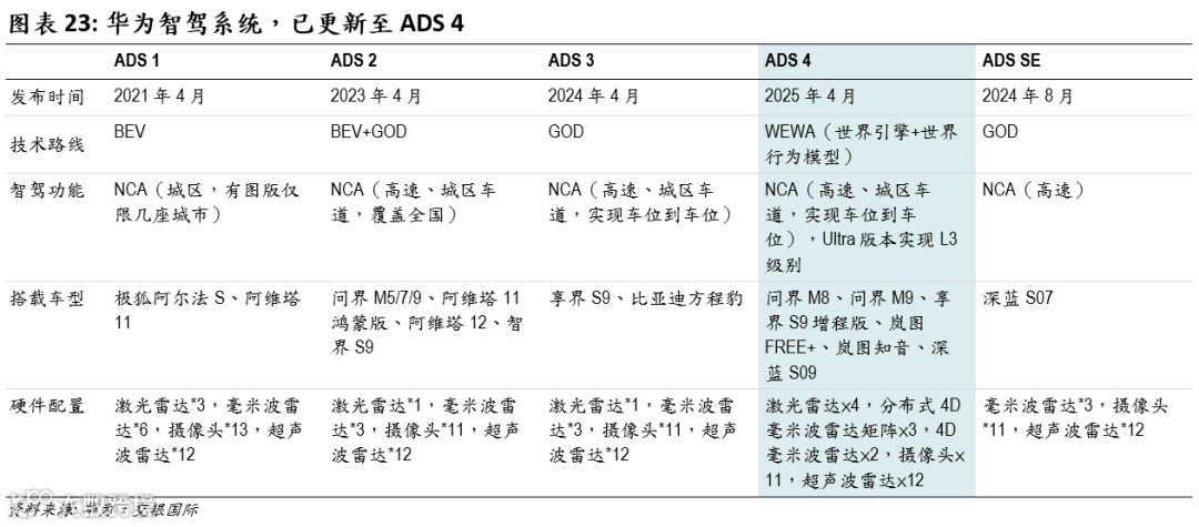 1.华为智驾系统已经更迭至ADS 4版本,率先迈向L3级自动驾驶