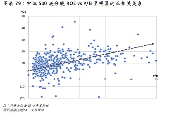 我们计算了中证500成分股其ROE与估值(P/B),不难看出,ROE与市场的估值水平呈现明显的正相关关系,通常而言,ROE越高,越容易获得较高的估值水平。因此通过“提质增效”提升ROE对于国企股票来说很可能意味着估值中枢水平的提升。