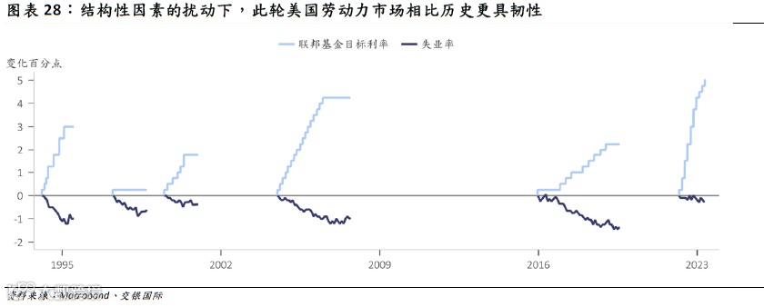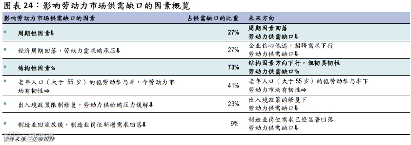 然而,此轮紧缩周期与历史上最大的不同是,此轮紧缩周期中,不论是就业还是通胀,其都不再是周期的单因子驱动,而是变成了周期+结构因素的双因子驱动,美联储的货币政策也因此深受结构因素的扰动: