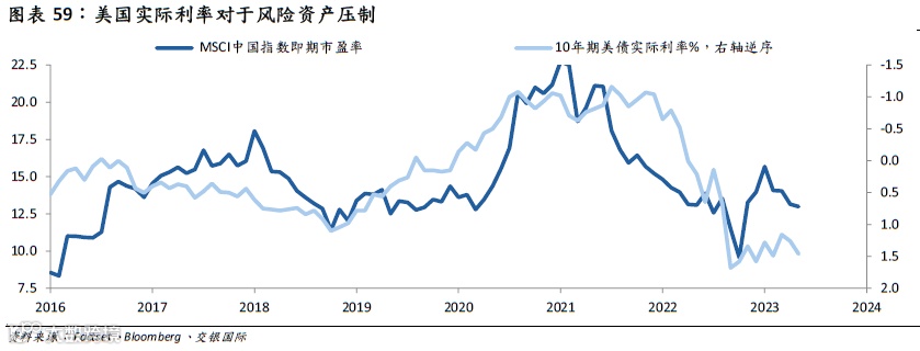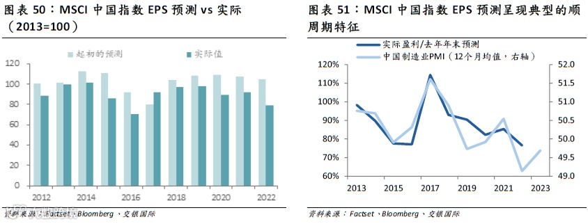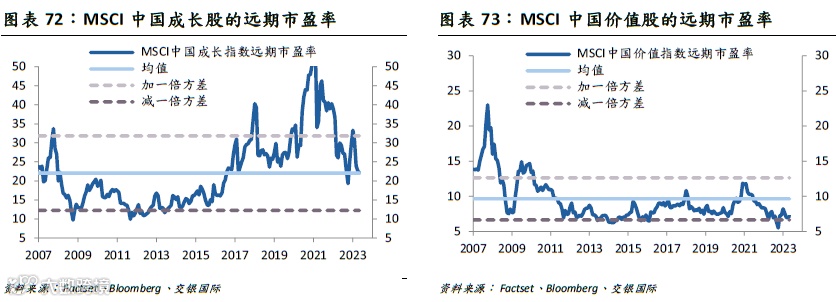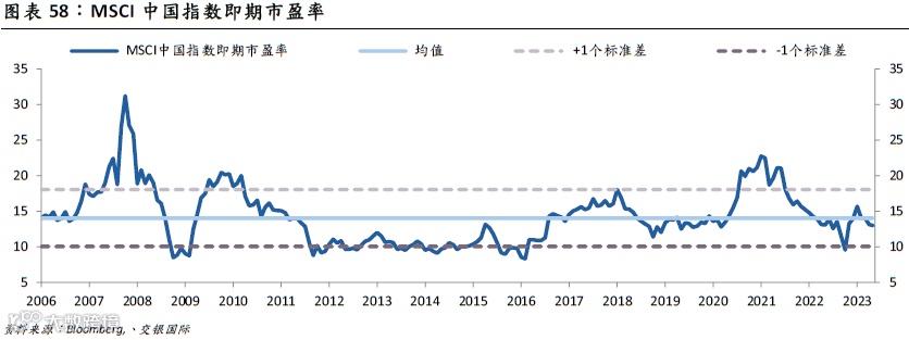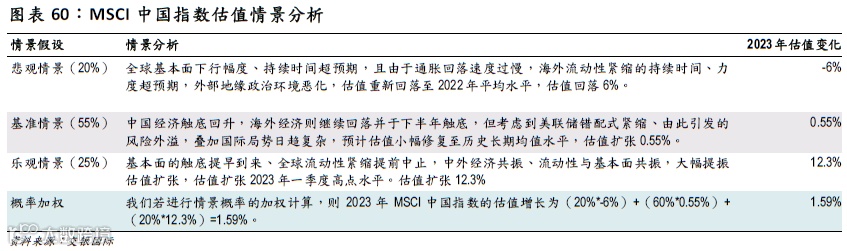 我们预计2023年MSCI中国指数的估值小幅修复0.55%-1.59%。