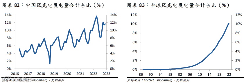 在此背景下,不论是中国还是全球,以风、光为代表的间歇式可再生能源(Variable Renewable Energy,VRE)的发电量占比已经突破了10%的关键水平。
