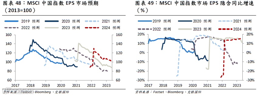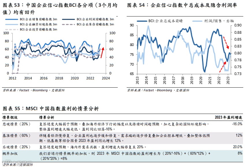 我们预计,2023年MSCI中国指数的盈利增长为8%-12%。