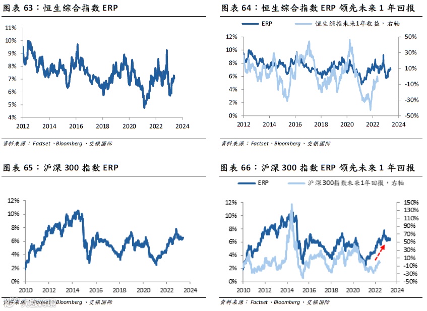 不论是A股还是港股,ERP的高低通常可以领先指数未来1年的回报。高企的ERP无异预示着未来中国股票市场可期的回报率。