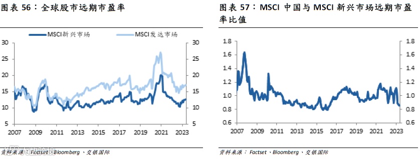 虽然新兴市场、发达市场在2023年估值都有所修复,但是新兴市场的相对、绝对估值水平都仍然处于相对低位。