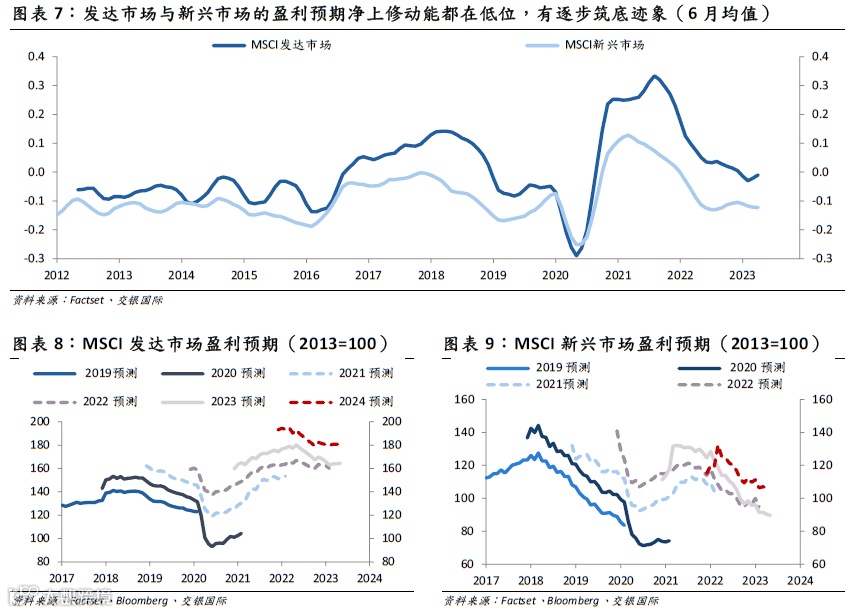 新兴市场与发达市场盈利预期都在低位,有逐步筑底迹象