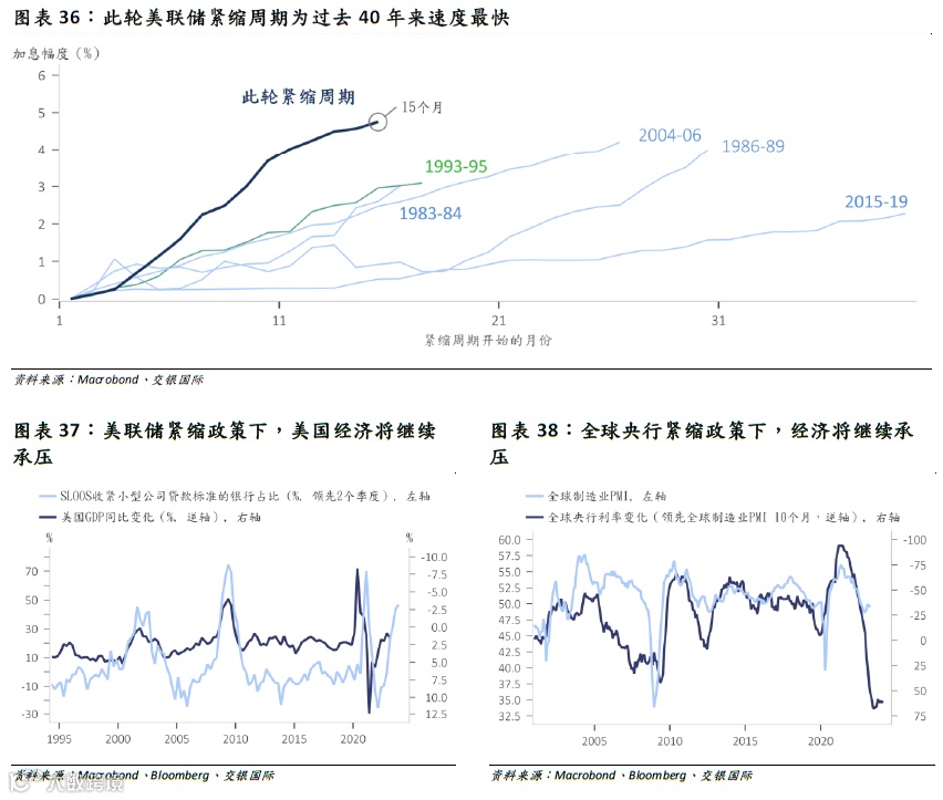 周期与货币政策错配下,即使美国经济已明显走弱,但是美联储的货币政策仍处在“高原平台”的困境——虽然美联储加息很可能已画上句号,但高利率很可能会维持较长时间,降息的时点进而晚于市场预期。在持续的高利率环境下,不论是美国经济、风险、还是市场环境,都将相比历史紧缩周期额外承压。