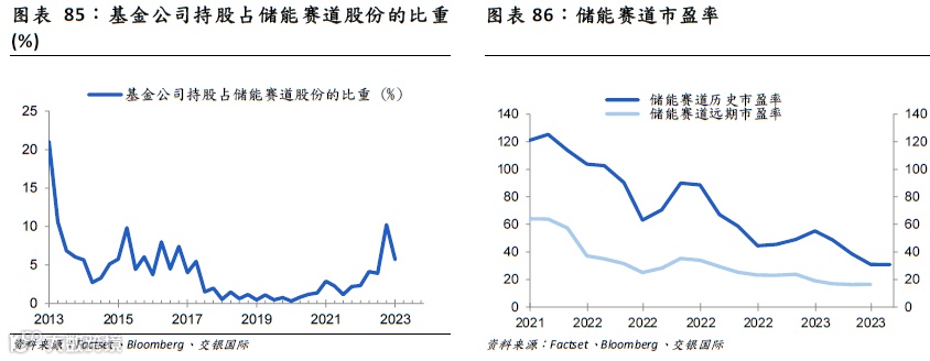 ▍储能整体而言属于市场关注度较高的赛道,基于我们先前所提到的,在当前的市场环境下需要更为兼顾安全边际。整体来看,当前机构对于储能赛道的持股比重不低,以基金公司为例,其占到整体赛道的持股比率从2020年不足1%提升至2022年4季度末约5%。但考虑到其爆发式的高成长性,以基金公司为代表的机构投资人持股比率仍有较大提升空间。
