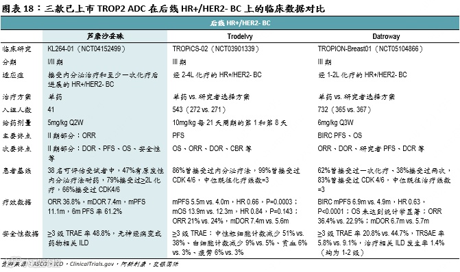 是最普遍的BC亚型,约占所有BC病例的55%,若考虑HER2低表达人群,则这一比例将达到70%,患者五年生存率约为30%。内分泌疗法是晚期HR+/HER2-BC的主要治疗手段,但40-50%的患者对其有耐药性,对于这些患者,目前可用的有效治疗选择有限,存在较大的未满足临床需求。鉴于TROP2常在HR+/HER2- BC中过度表达,TROP2 ADC有机会解决这一需求。