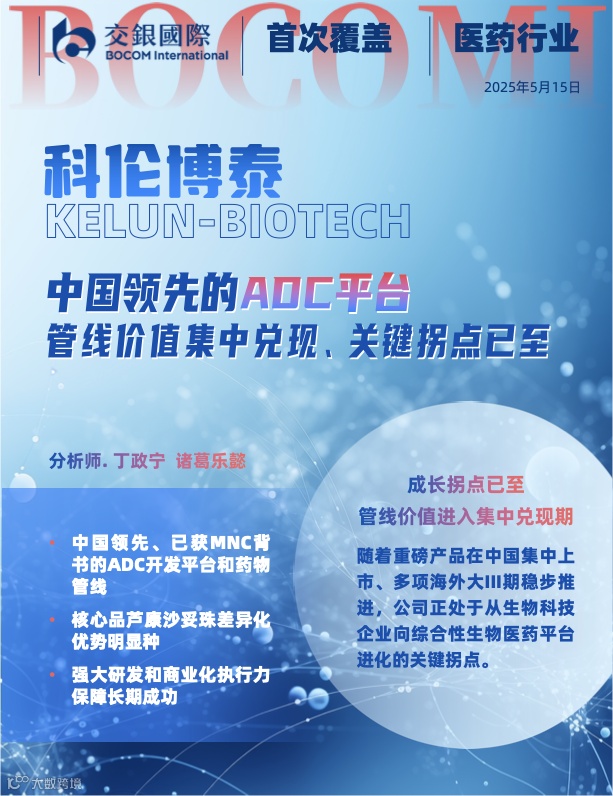 本文节选自交银国际已发布研究报告《中国领先的ADC平台,管线价值集中兑现、关键拐点已至》(2025/05/16)。