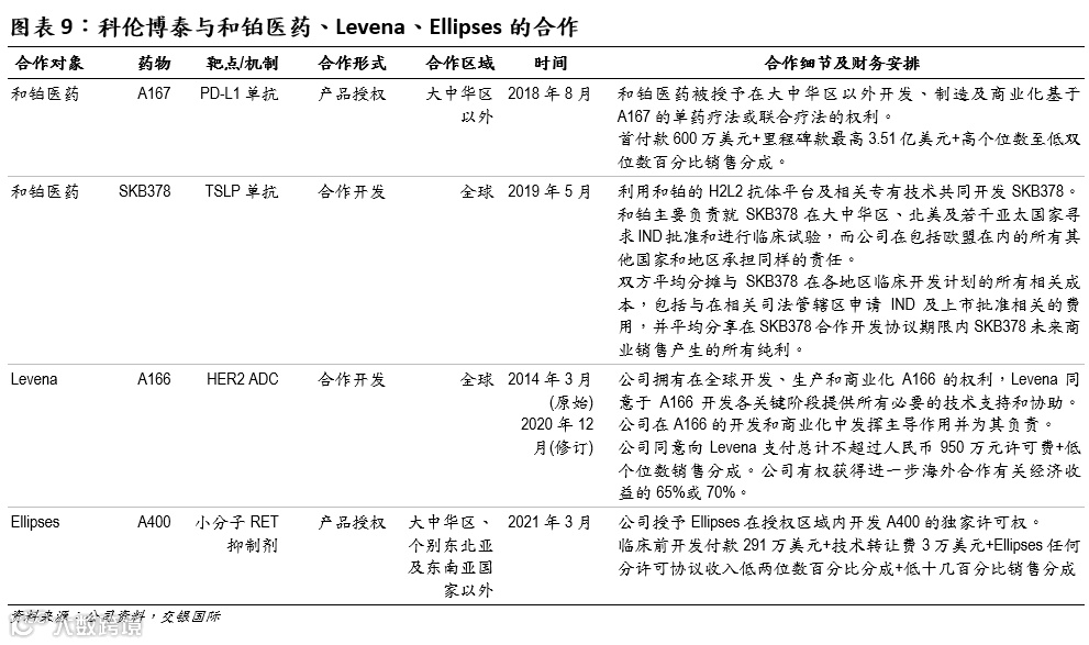 此外,公司还和和铂医药、Levena、Ellipses等公司达成产品授权/合作开发协议,主要围绕ADC、单抗、小分子靶向药等管线产品,进一步验证了公司三大大新药研究平台的实力。
