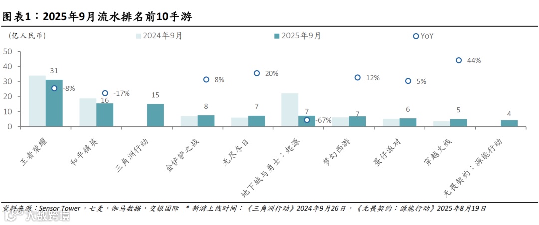本文节选自交银国际已发布研究报告《9月手游流水:腾讯同比企稳,网易海外新游释放增量》(2025/10/15)。