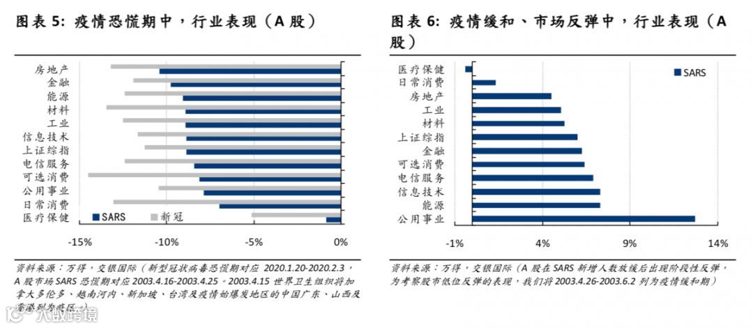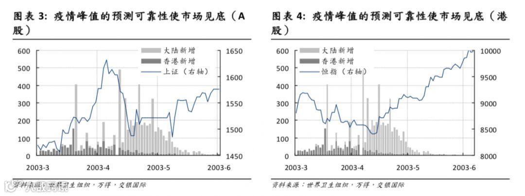 疫情峰值的预测可靠性使市场见底。很多市场观察者指出,随着感染病例达到峰值,市场也同时见底并复苏。市场共识大都认为周一开盘后市场会快速寻底,然后走出类似于上述疫情时的行情。对此,我们认为共识对于疫情期间行情的思考不够充分。这次的新型冠状病毒的传染性强,潜伏期长,甚至出现无症状传染。这些情况,以及此次疫情初期控制不力使病源散落各地,都增加了疫情预测的难度,也减弱了疫情峰值预测的有效性。与其说非典时市场底部预见了疫情峰值,还不如说疫情峰值的预测可靠性使市场见底。
