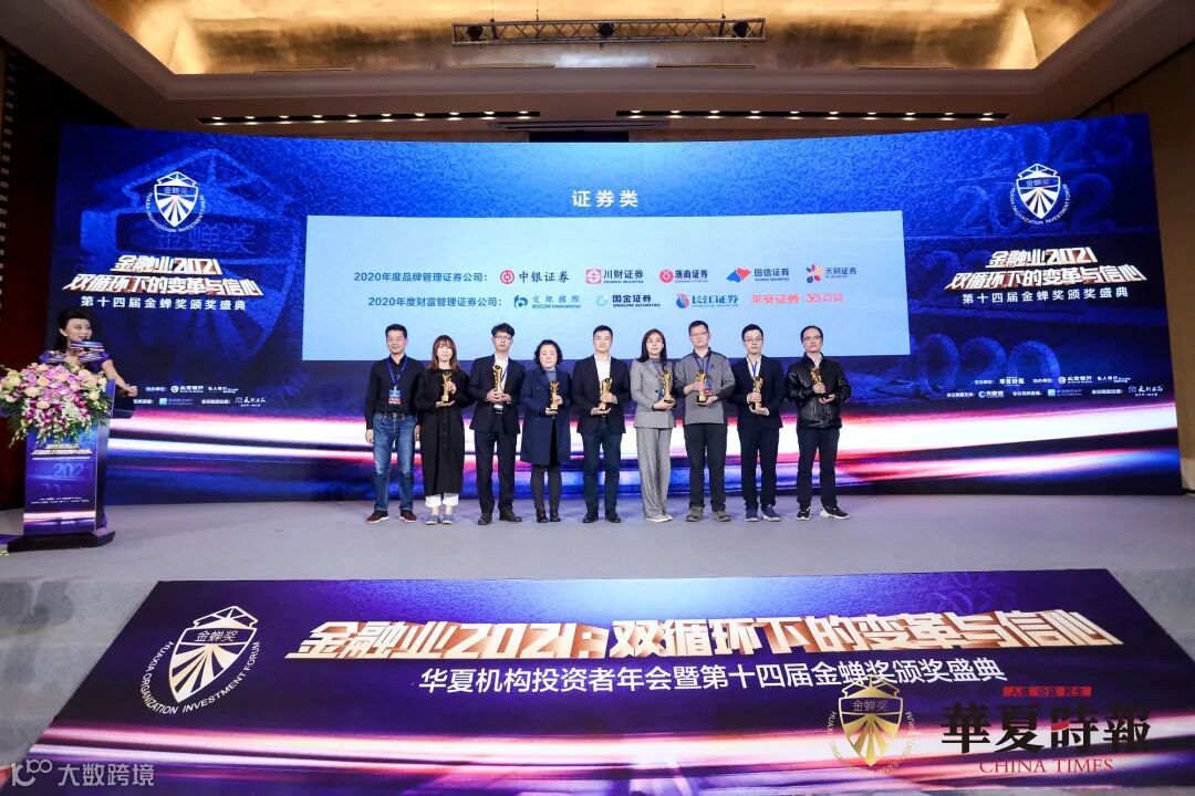 3月27日,由华夏时报主办的华夏机构投资者年会暨第十四届金蝉奖颁奖典礼在北京举行。交银国际(3329.HK)凭借在财富管理转型发展中的创新实践和优质服务,获评2020年度财富管理证券公司,成为唯一获此殊荣的香港中资券商。