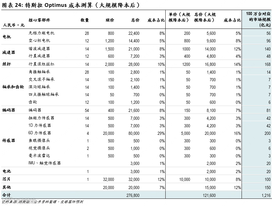我们认为,特斯拉入局人形机器人产业,将复制其在新能源汽车领域对全球产业链的推动作用,加速人形机器人产品的迭代和技术发展,同时带来了显著的降本能力。
