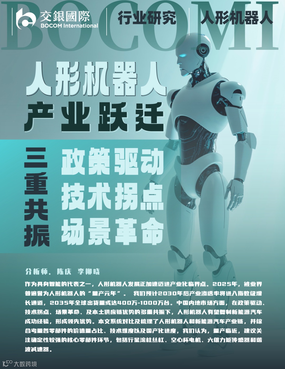 本文节选自交银国际已发布研究报告《人形机器人系列(1) 产业跃迁:政策驱动、技术拐点与场景革命的三重共振》(2025/04/02)。