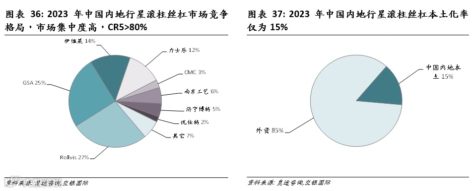 丝杠:行星滚柱丝杠和滚珠丝杠国产化率均仍有较大提升空间