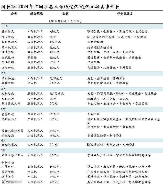 从中国内地人形机器人产业链企业的分布看,据高工机器人产业研究《人形机器人产业地图(2024)》显示,深圳、北京、上海、杭州、苏州分别拥有22.4%、14.5%、11.8%、5.8%和5.5%的产业链企业。同时从一级融资情况来看,据中国机器人网不完全统计,2024年,中国内地机器人行业共发生200起左右投融资事件,金额总计超200亿元。其中,近亿元与过亿元级事件约55起,金额超175亿元,融资总额超70亿元反映人形机器人项目持续受到资本青睐。