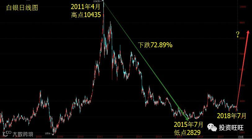 以史为鉴,2011年4月白银从历史高位10435点持续走跌,最低去到2829点,下跌空间超70%,随后陷入多年的震荡调整之中,从高位下跌至今,历时已是7年。不论是从时间还是空间来看,白银调整均已到位。