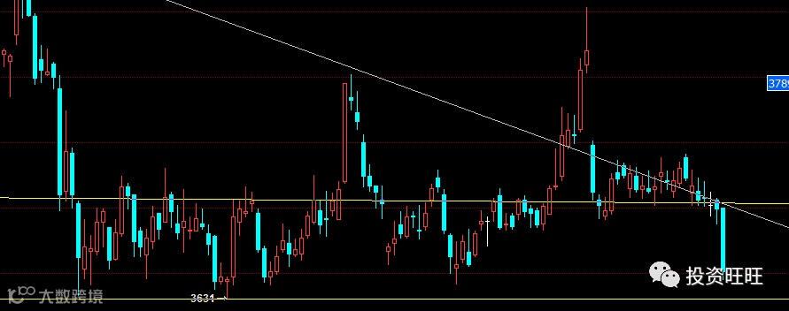 操作上,昨天盘中已经提示若无法站稳3700上方,则要空单进场锁一下,那如果没有空单入场对锁的投资者,后市继续观察3700-3670-3650-3630这几个关键区域,若再给机会返回3700及时对锁。若3650-3670无法站稳,及时止损或空单入场对锁。目前整体行情维持震荡偏空观点,而3700是多空情绪分界线。3630-3650区域,空仓投资者可逢低做多。3670-3700区域,背靠压力位,短空,目标下方支撑。