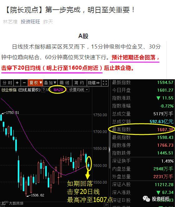 创业板指数昨节目提示预计短期还会回落,击穿下20日均线后止跌企稳!基本和预计的相一致。