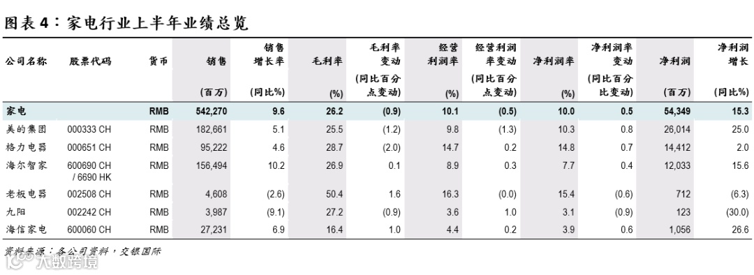 国补政策与全球化双轮驱动,盈利韧性凸显:2025上半年,家电行业在“以旧换新”等政策支持和海外市场拓展的推动下,实现销售与净利润双增长。我们所关注的家电企业加总销售同比增9.6%,净利润同比增15.3%,表现出较强的增长韧性。然而,中国内地市场价格竞争持续,对企业盈利水平带来一定压力,行业毛利率同比下滑0.9个百分点。从品类表现来看,空调作为家电中规模最大的品类,在政策带动下表现突出。根据奥维云网数据,上半年空调销售额同比增长12.4%,仍是拉动行业增长的重要引擎。