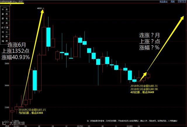 从2016年2月金银比触及80后,引爆了长达6个月的大涨,华通银价从3303元/千克涨至4655元/千克便可知晓。