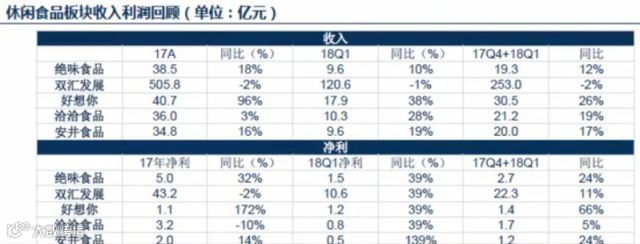 好想你:主要是百草味增速高,本身的传统业务红枣单店数据其实很一般。但一季度在阿里销售的百草味增速超过40%,远远甩开了竞争对手。整体导致了季报利润翻番,收入增长37%。