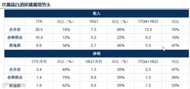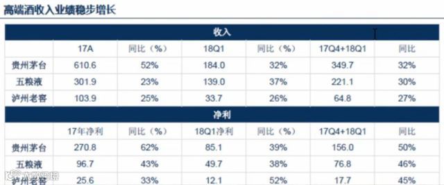 水井坊:次高端里我认为最可能走出来的公司,去年也重点买过。17年井台增长60%,八号增长80%基本符合预期,今年一季度两个增速合计占比又是80%多,与去年和经销商沟通下来的情况是符合的,基本主流区域都是增速80-100%。资产减值整体来说也告一段落了,但大股东仍为外资帝亚吉欧,年报是去年7月到今年6月底。所以这公司很容易是一季度和四季度爆业绩,二季度把业绩调下来,以免大股东压指标。整体来说,这公司已经从去年重点解决的估值错配问题里涨回到了今年的市场共识,后续还值得继续跟踪。