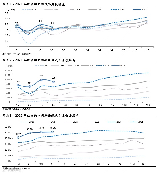 本文节选自交银国际已发布研究报告《4月新能源车表现亮眼,预计5月车市增速平稳》(2025/05/12)。