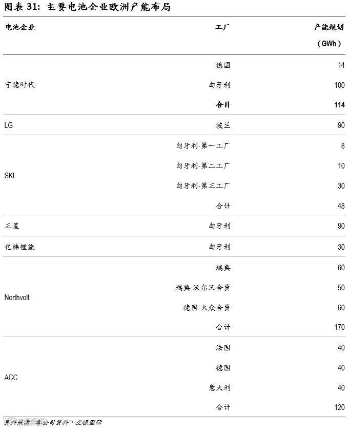 欧洲:宁德时代在欧洲市场开拓进展较为顺利,持续获得大众、Stellantis、宝马、奔驰等多个欧系本土车企的大额订单。宁德时代已经在德国和匈牙利建厂,合计产能114GWh。其中德国工厂已经于2023年正式投运。