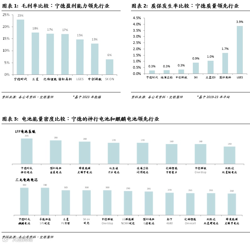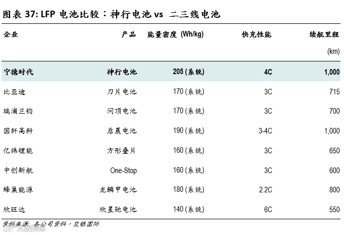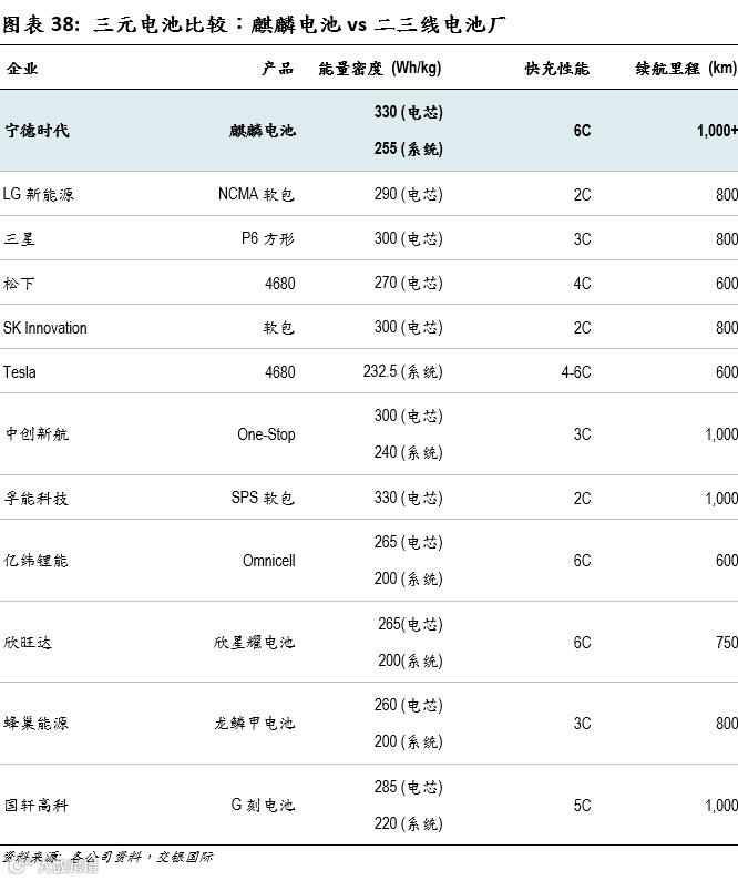乘用车电池:神行和麒麟具备行业领先的能量密度,强化宁德竞争力