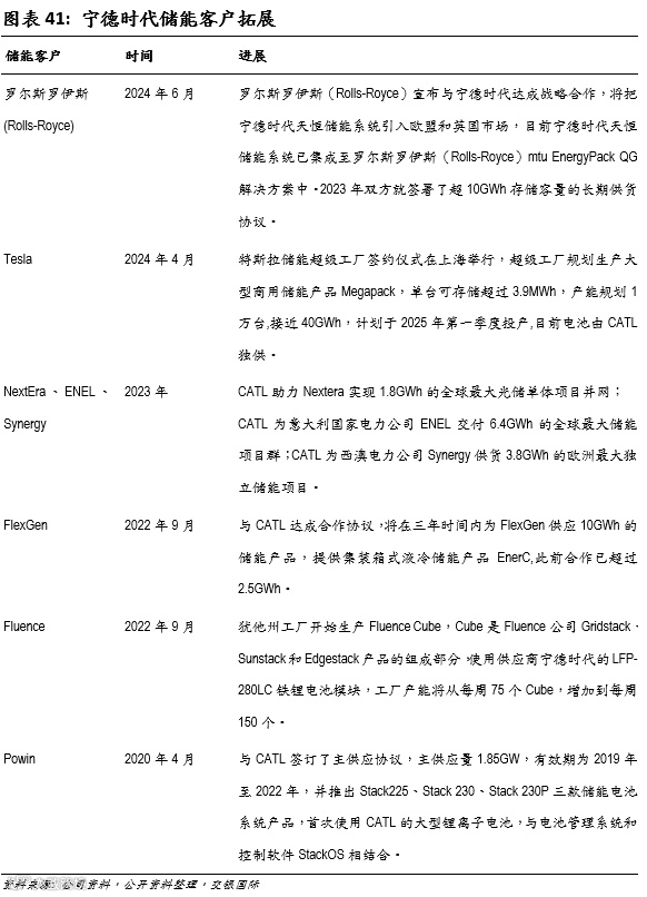 客户拓展上,宁德时代与海外多家企业签订了合作协议。2024年4月,宁德时代与特斯拉上海储能超级工厂签订了供货协议,该工厂初期规划年产商用储能电池系统1万台,储能规模近40GWh,而宁德时代2023年储能电池出货量为69GWh。根据上海证券报报道,特斯拉上海储能超级工厂预计于2024年5月正式开工,并于2025年1季度量产。