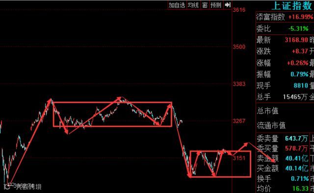 今天上证指数并没有创业板强势,但是走势还是维持了高位震荡行情。全天都处于十五分钟级别的中枢震荡上沿,技术形态看有止跌反弹的机会,但是上方缺口的压力非常大,所以短期市场预计突破还是有难度,如果中枢突破失败,那么大盘还是会有下探的可能,不过不用太担心,因为后面大概率会在中枢底部附近止跌,回调就是低吸的机会。