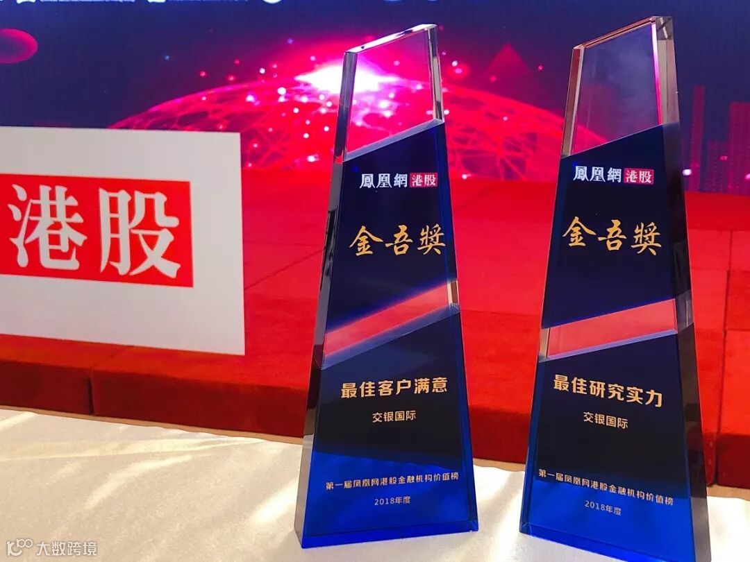 1月9日,由凤凰网港股发起的2018年度金融机构价值榜金吾奖评选结果在香港揭晓,交银国际(3329.HK)荣获2018年度券商最佳研究实力奖、财富管理最佳客户满意奖两项大奖。